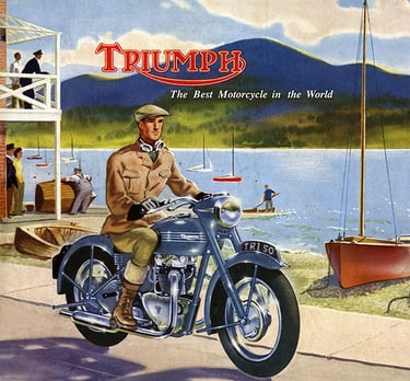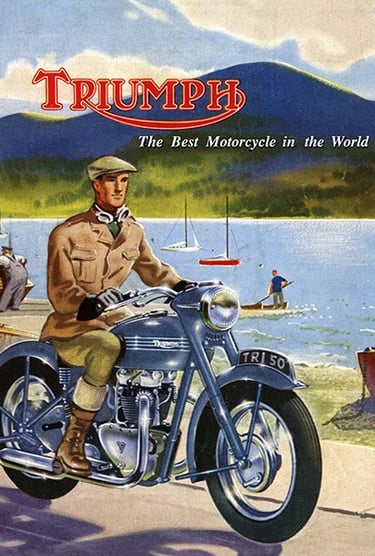 • Des affiches d'époque sur des motos anciennes, tirées d'une collection d'archives.